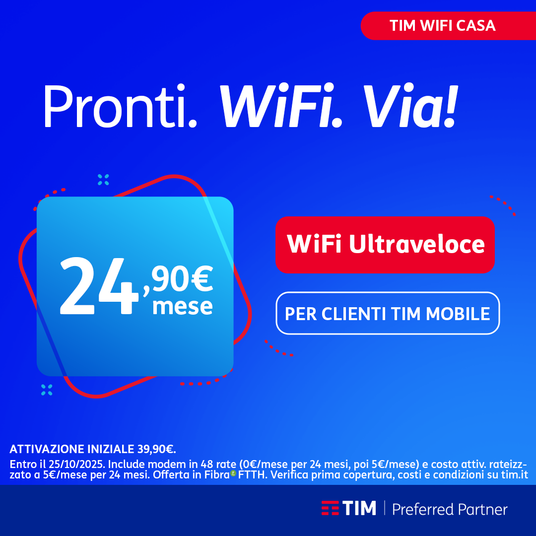 Attiva una nuova linea Internet a casa, hai la qualità della Fibra FIBRAFFibraultraveloce, il Modem TIM e le chiamate illimitate a partire da 24,90€ per i clienti mobili TIM.