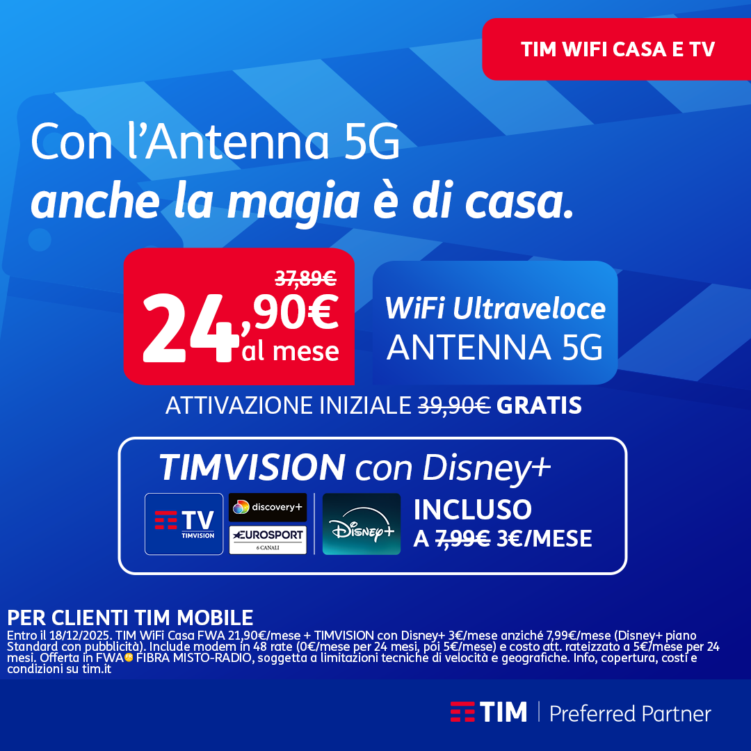 Non solo GIGA ILLIMITATI in 5G per tutte le linee mobili che aderiscono a TIM WIFI Casa, ma anche tante offerte e vantaggi riservati.